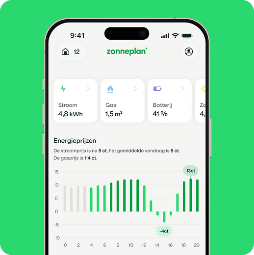 Dankzij de Zonneplan app zie je vandaag de stroom- en gasprijzen voor morgen. Zo kan je profiteren van goedkope uren door op de juiste momenten bijvoorbeeld je auto op te laden of de wasmachine aan te zetten. Daarnaast ligt de gemiddelde energieprijs bij een dynamisch contract lager dan bij een vast of variabel contract. En verzet je je verbruik zoveel mogelijk naar de goedkope momenten? Dan bespaar je nóg meer.
