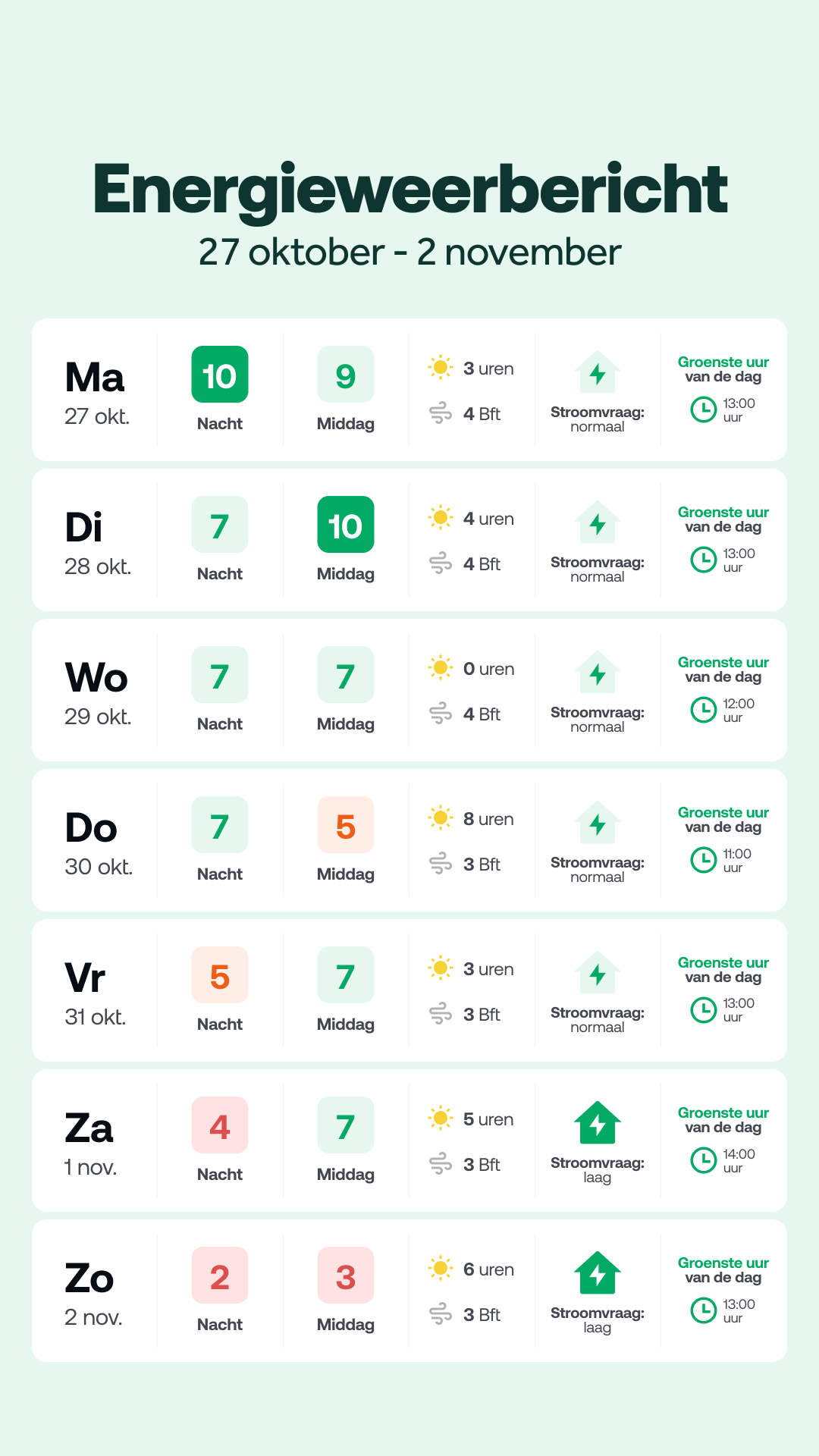 Maandag en dinsdag zijn de beste dagen van de week. Dat zijn goede momenten om je grote verbruikers aan te zetten.