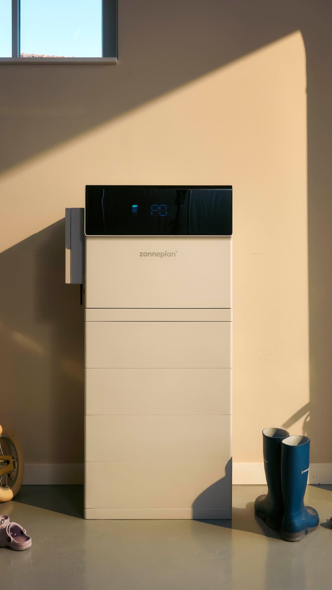 De batterij bewaart de zonnestroom die je niet meteen gebruikt. Zo hoef je die niet meer gratis terug te leveren aan het net.