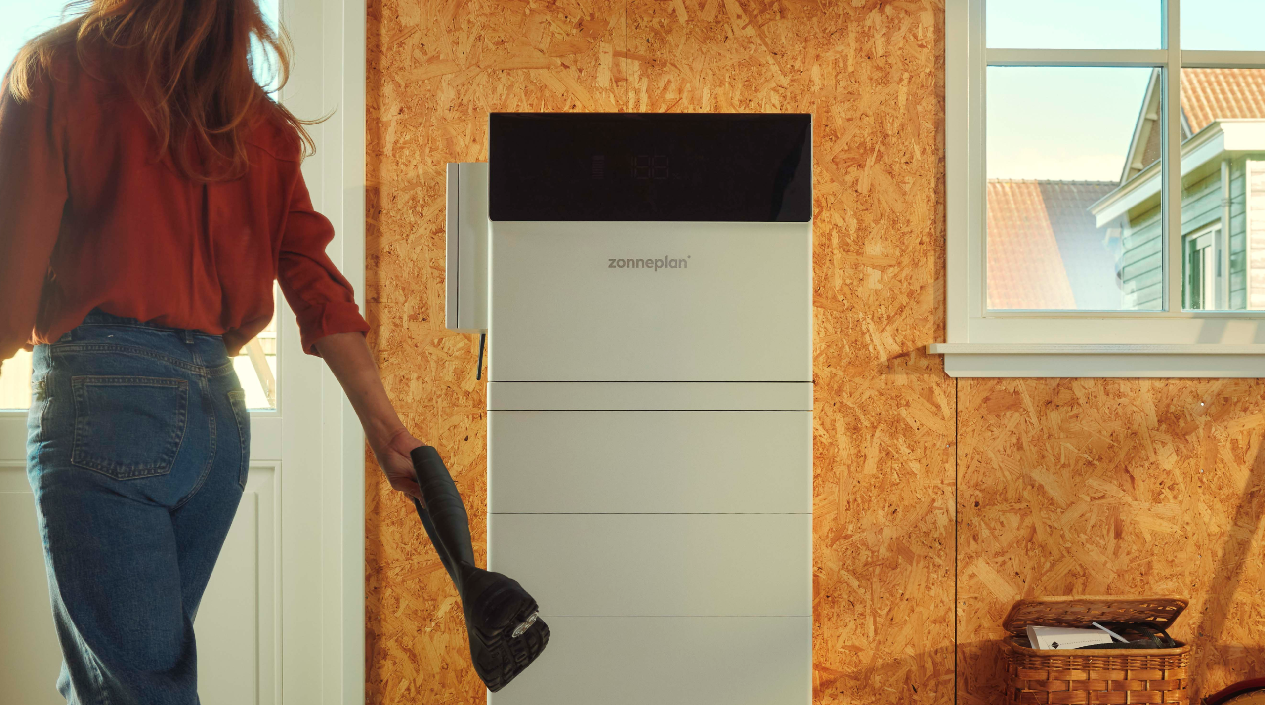 De thuisbatterij slaat de stroom op die je zelf niet direct gebruikt. Zo bespaar je op energiekosten doordat je minder zonnestroom teruglevert aan het stroomnet.
