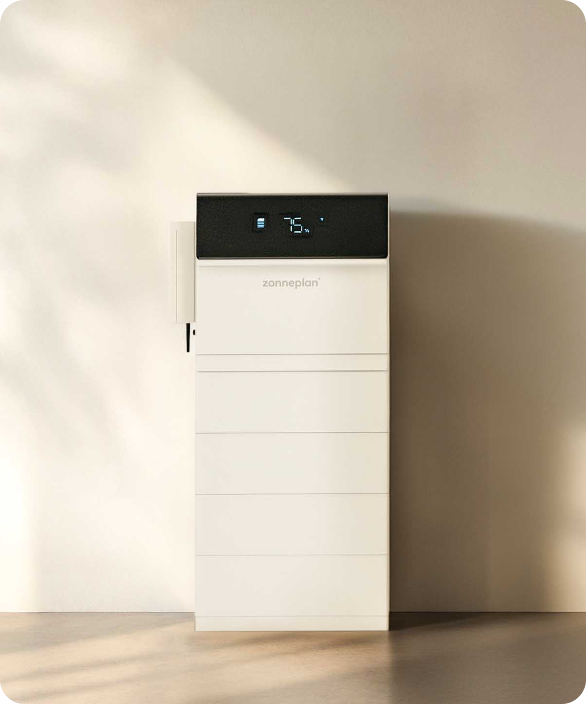De thuisbatterij van Zonneplan is ongeveer 55 cm breed en 35 cm diep. De hoogte is variërend. Afhankelijk van de configuratie. De thuisbatterij en omvormer hebben voldoende ruimte nodig voor koeling. Voor een thuisbatterij van 20 kWh betekent dit dat je minstens 95 cm breed, 85 cm diep en 152 cm hoog vrije ruimte nodig hebt.