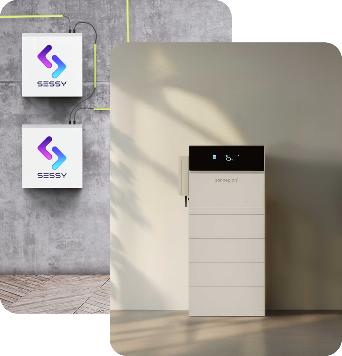 Met zowel de Zonneplan thuisbatterij als de Sessy is het mogelijk om je zelf opgewekte zonnestroom op te slaan.