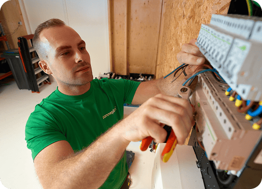 Zijn de zonnepanelen en de omvormer aangesloten op de meterkast? Dan zorgen de monteurs er meteen voor dat jouw systeem werkt. Jij bespaart vanaf nu!